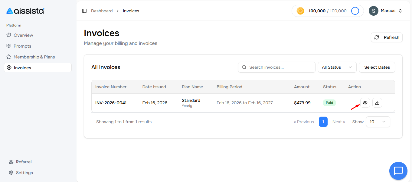 If you’ve purchased a plan and need an invoice for documentation or records, you can download it at any time. There are two ways to access your invoice: