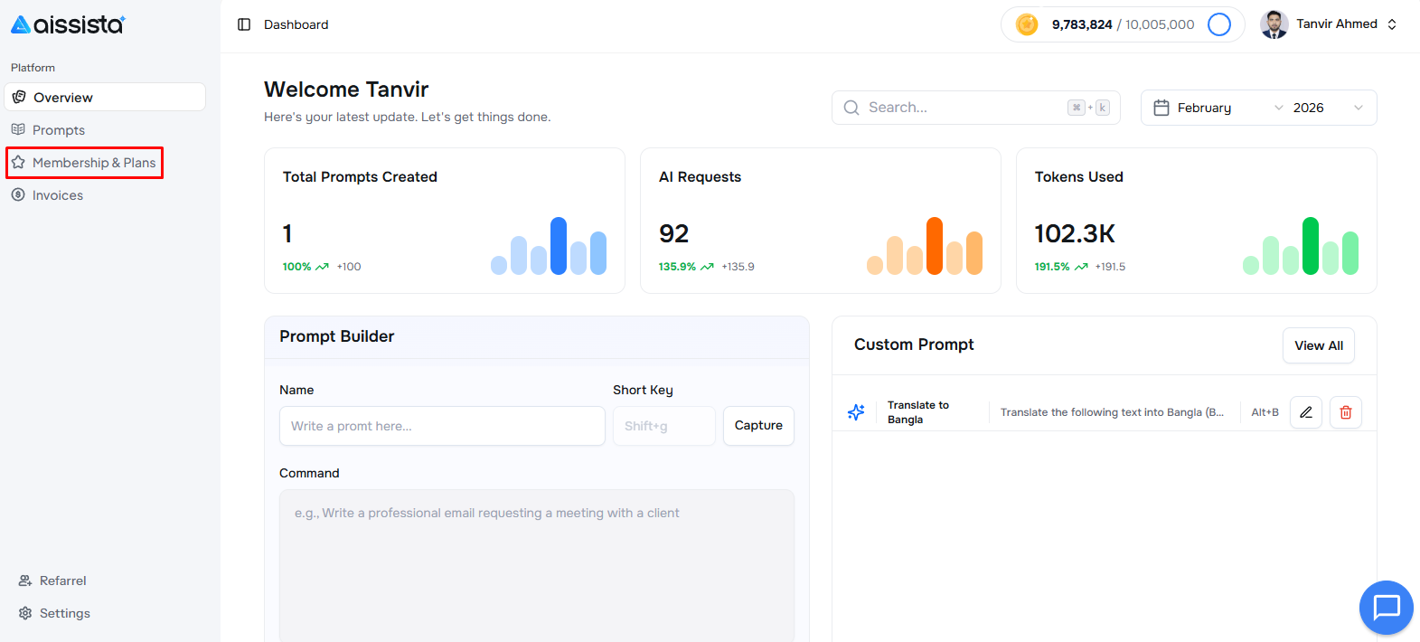 From your dashboard, click onMembership & Plans in the left-hand sidebar.