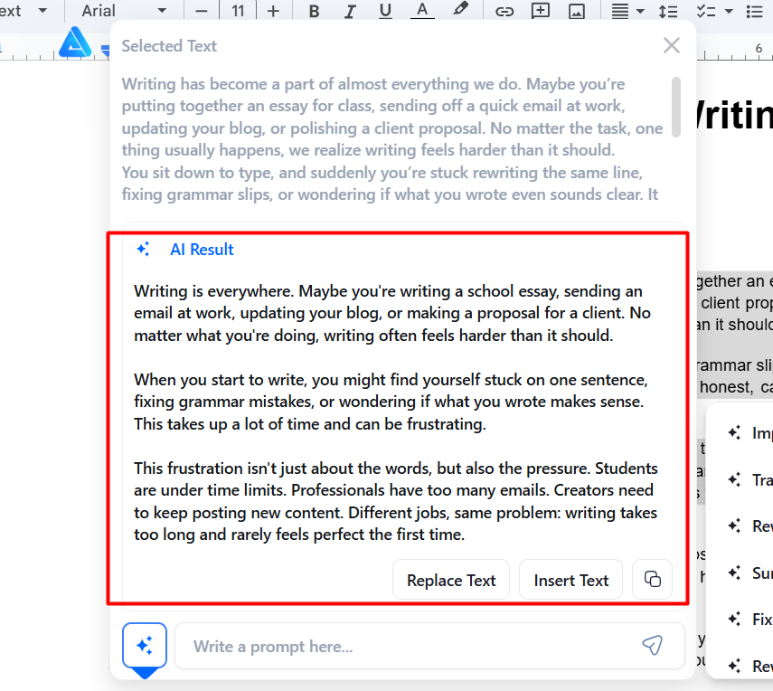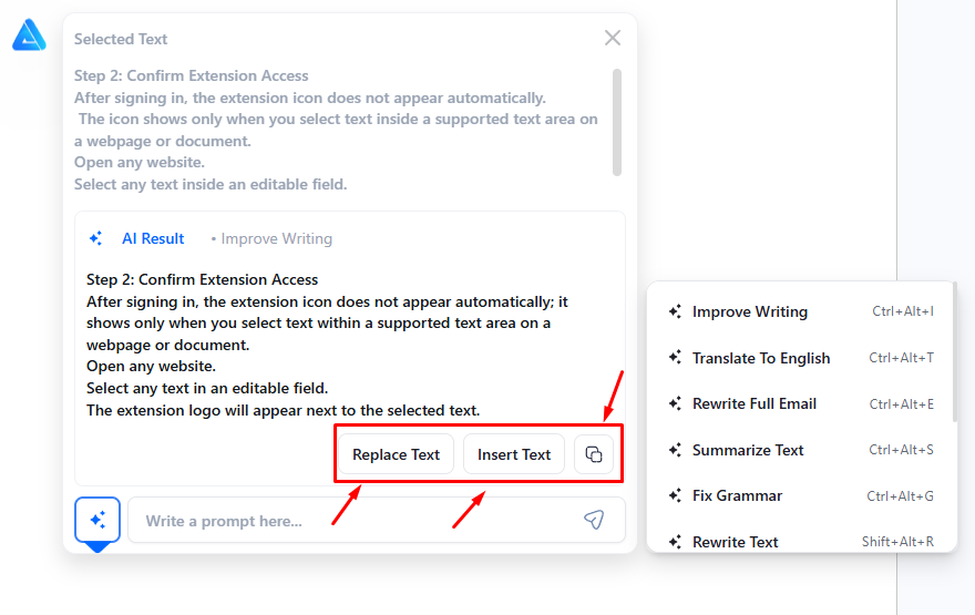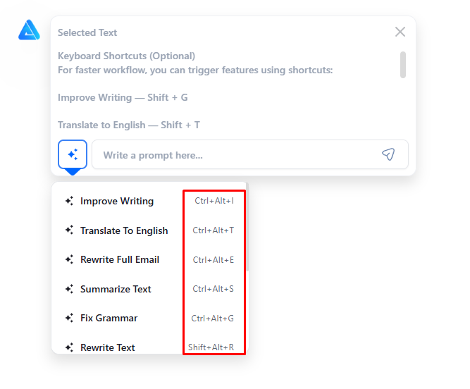 The icon shows only when you select text inside a supported text area on a webpage or document.