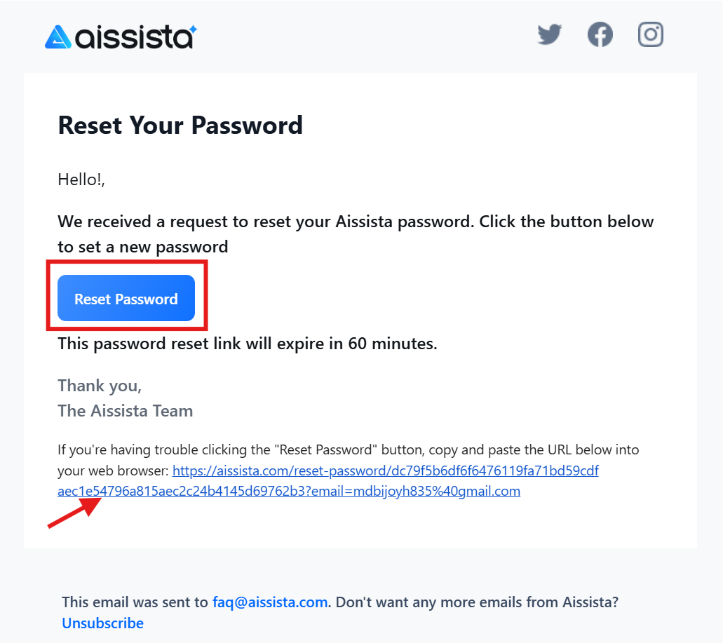Open your email inbox,spam and look for a message from The Aissista Team.