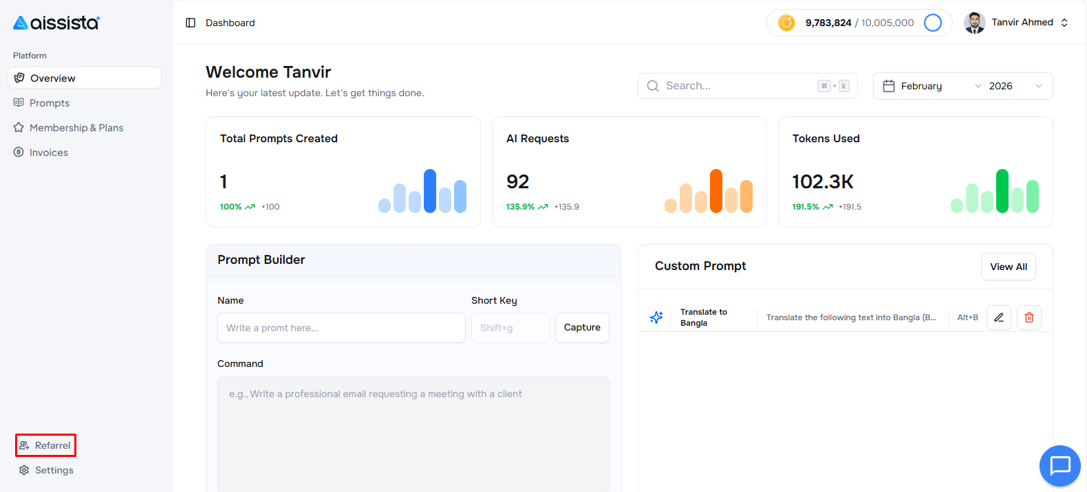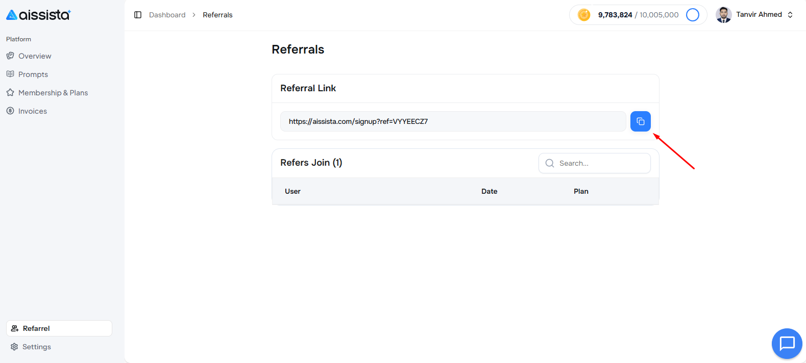 Invite your friends to Aissista and earn Tokens as a reward. Follow these simple steps to find and share your unique referral link: